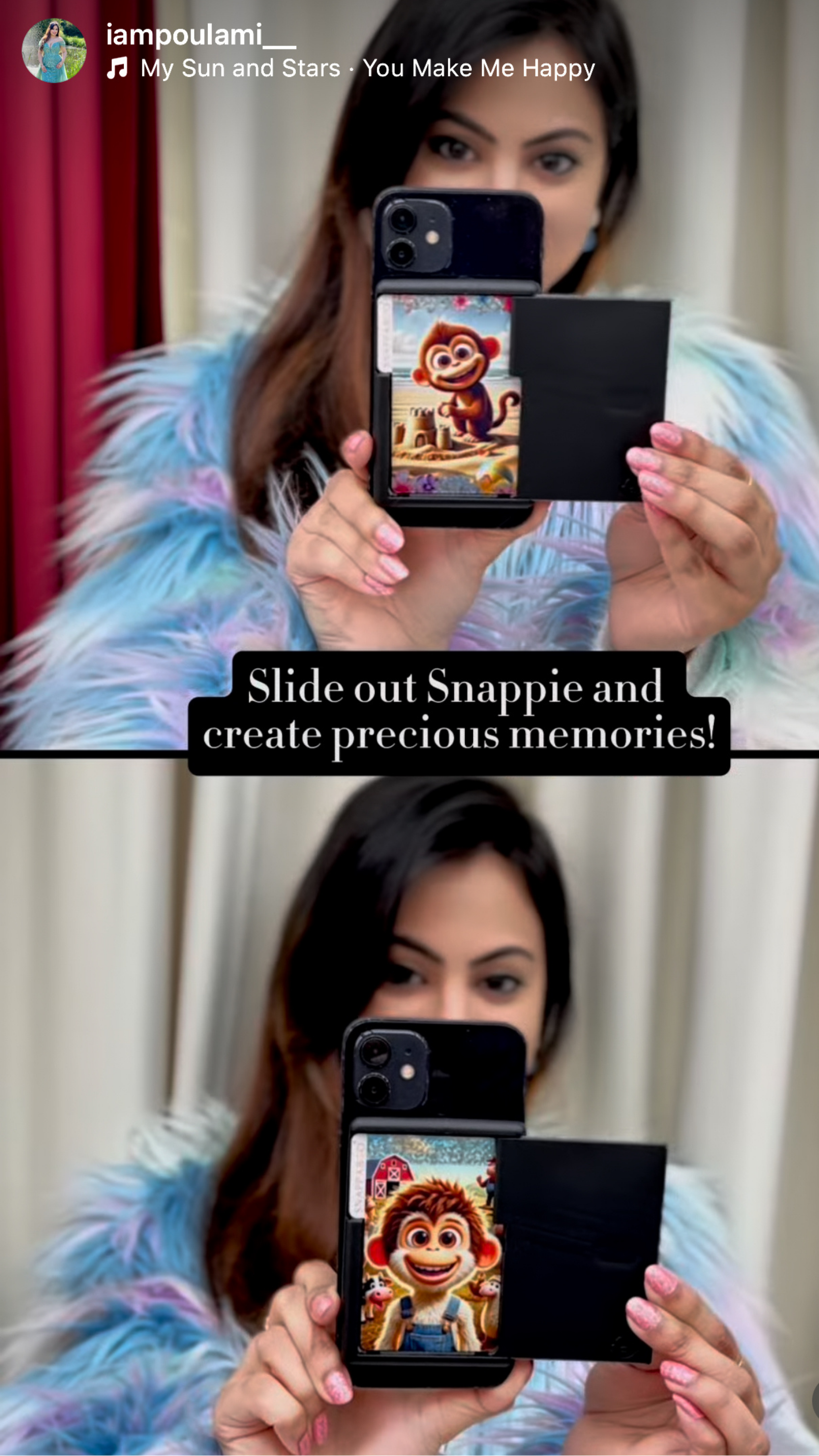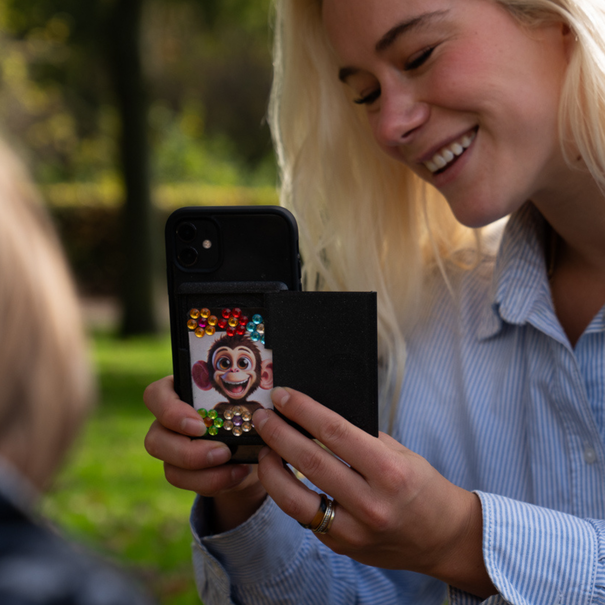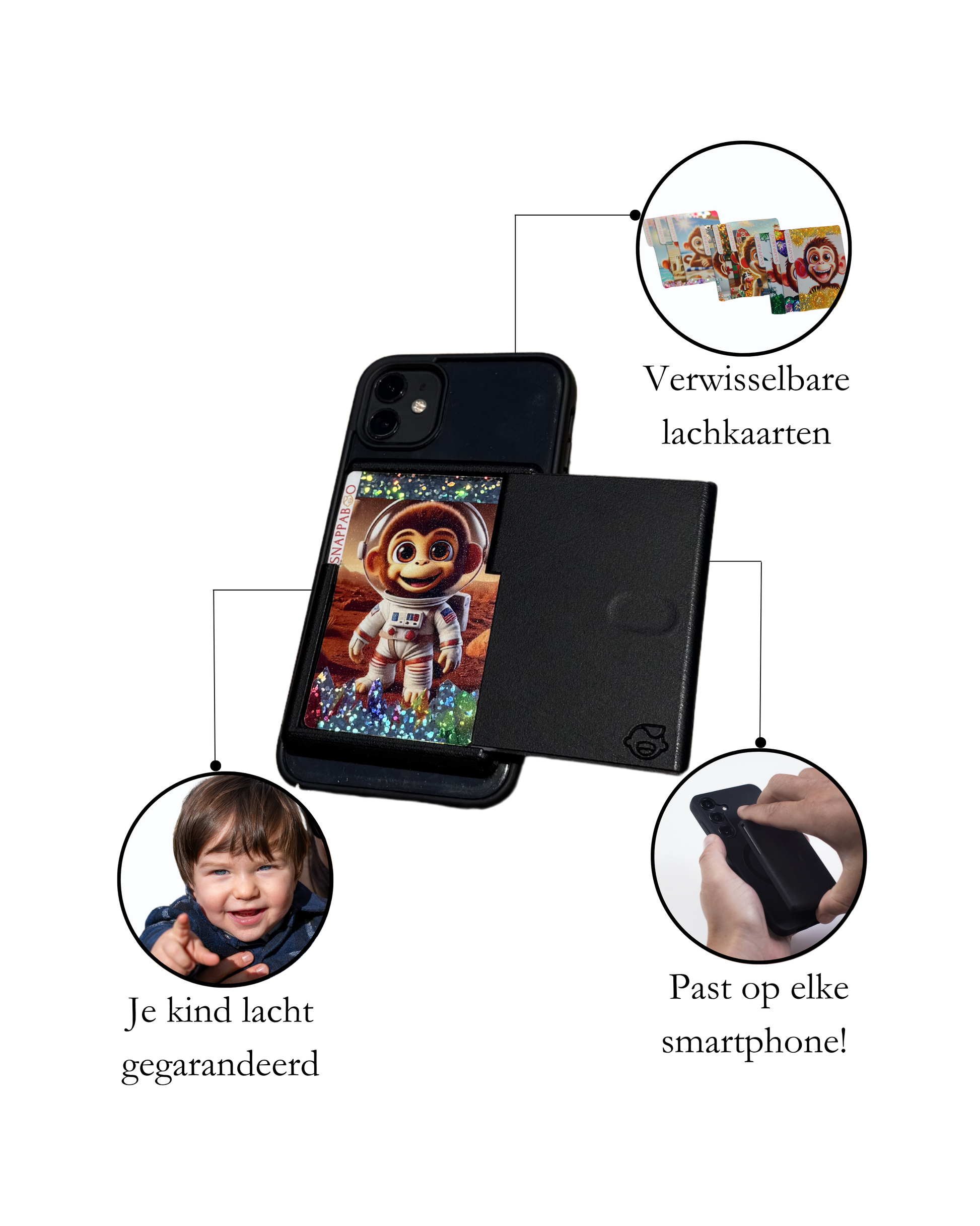 Familiefoto's voorgoed veranderd! Maak kennis met Snappaboo: de slider die je telefoon verandert in een lachmachine. Schuif het hoesje open en maak de mooiste foto's. Klik, glimlach, koester!